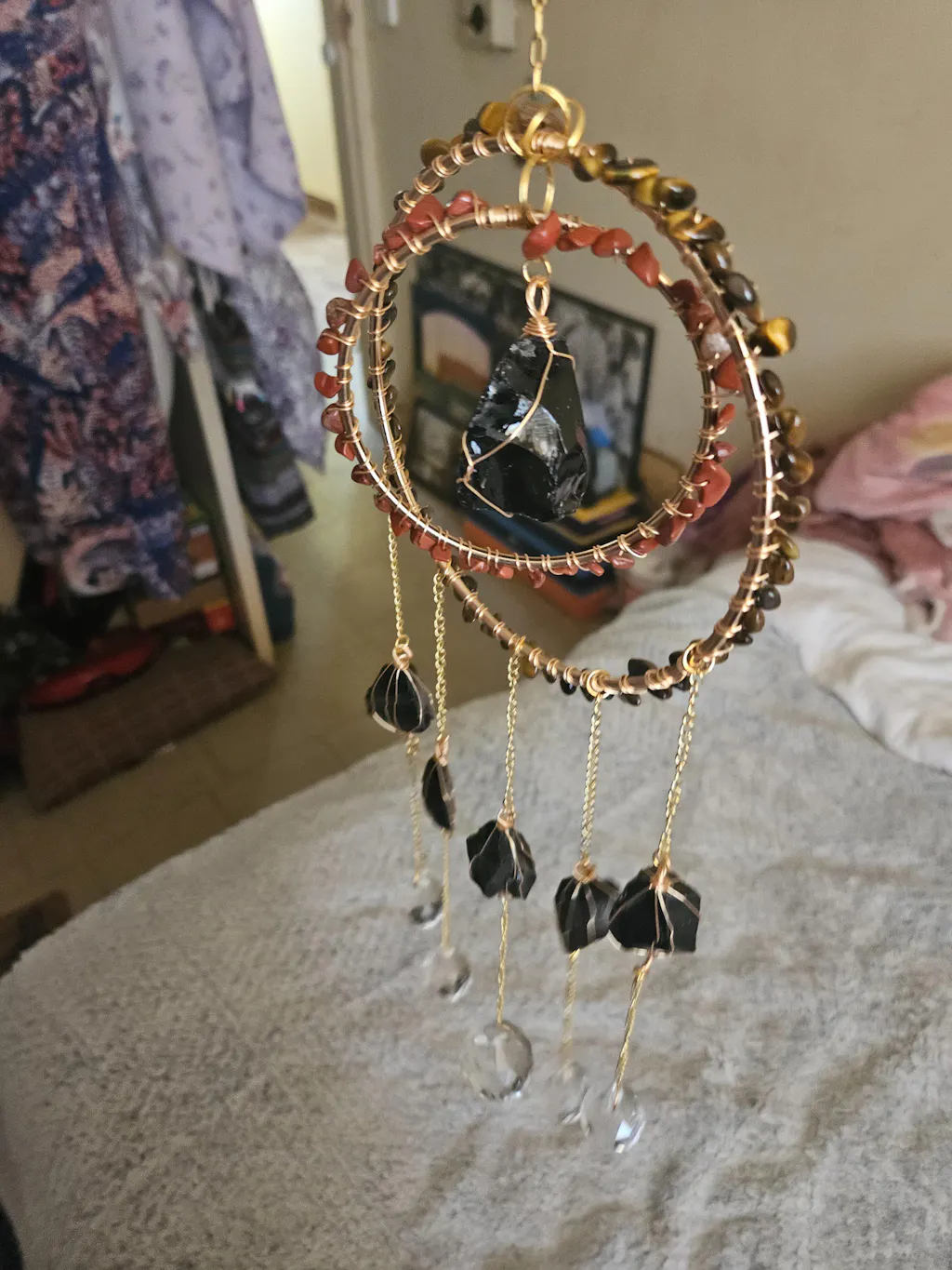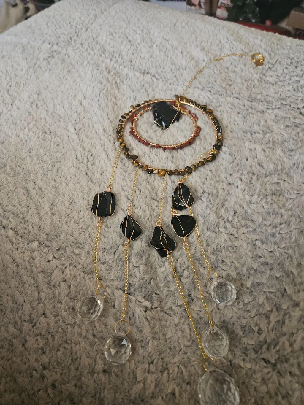 Together, these crystals to form a protective trio — supporting inner strength, grounded focus, and energetic shielding. Like an anchor for your space, this suncatcher brings balance, protection, and purpose into your daily life.