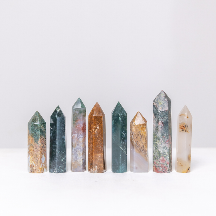 Moss Agate Crystal Tower