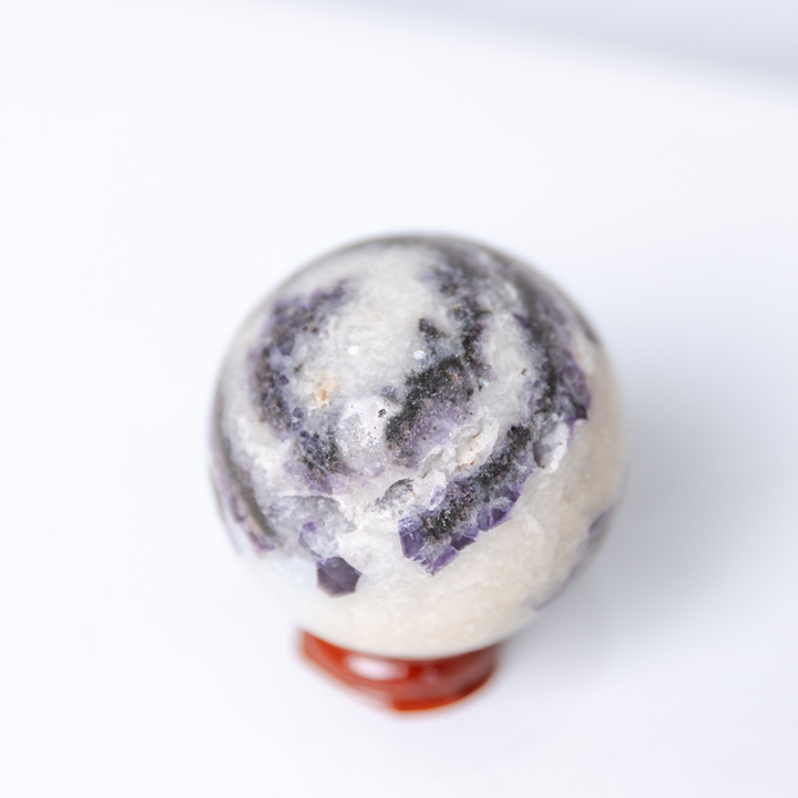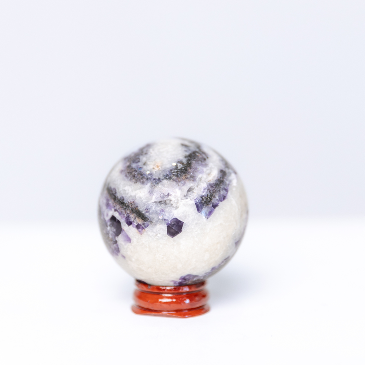 Every sphere is unique and rests beautifully on its accompanying wooden sphere holder, allowing you to display it with intention in any sacred space.